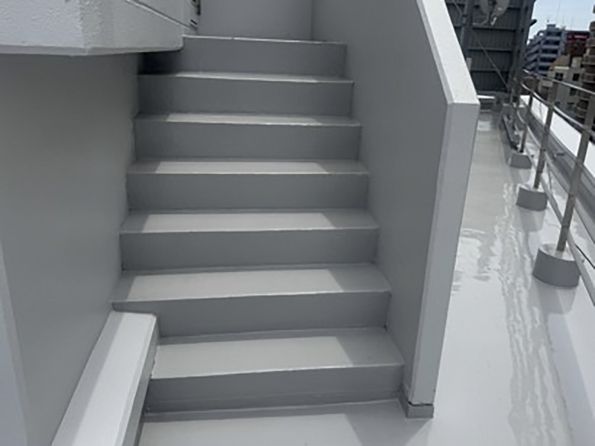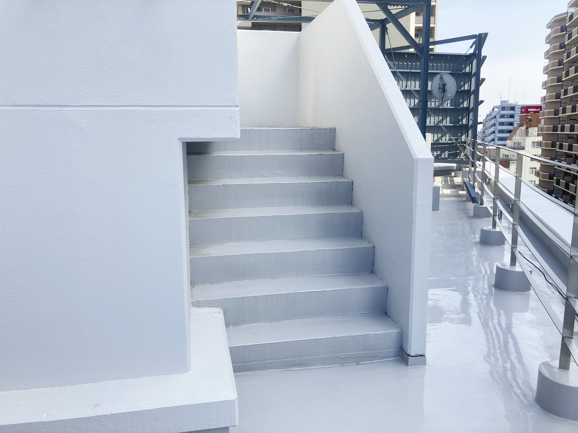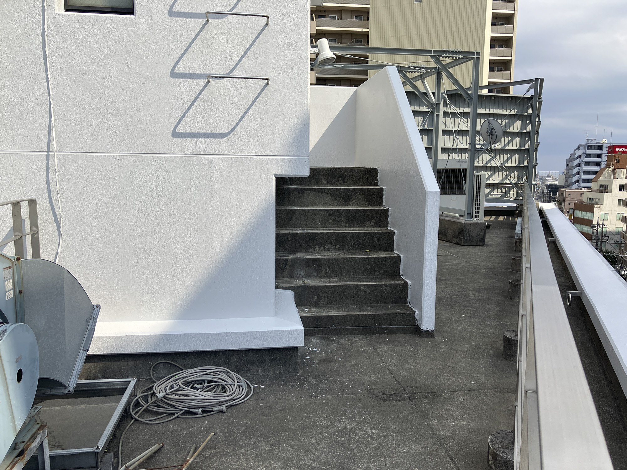 ビルの屋上防水工事と外階段の防水工事を行いました。