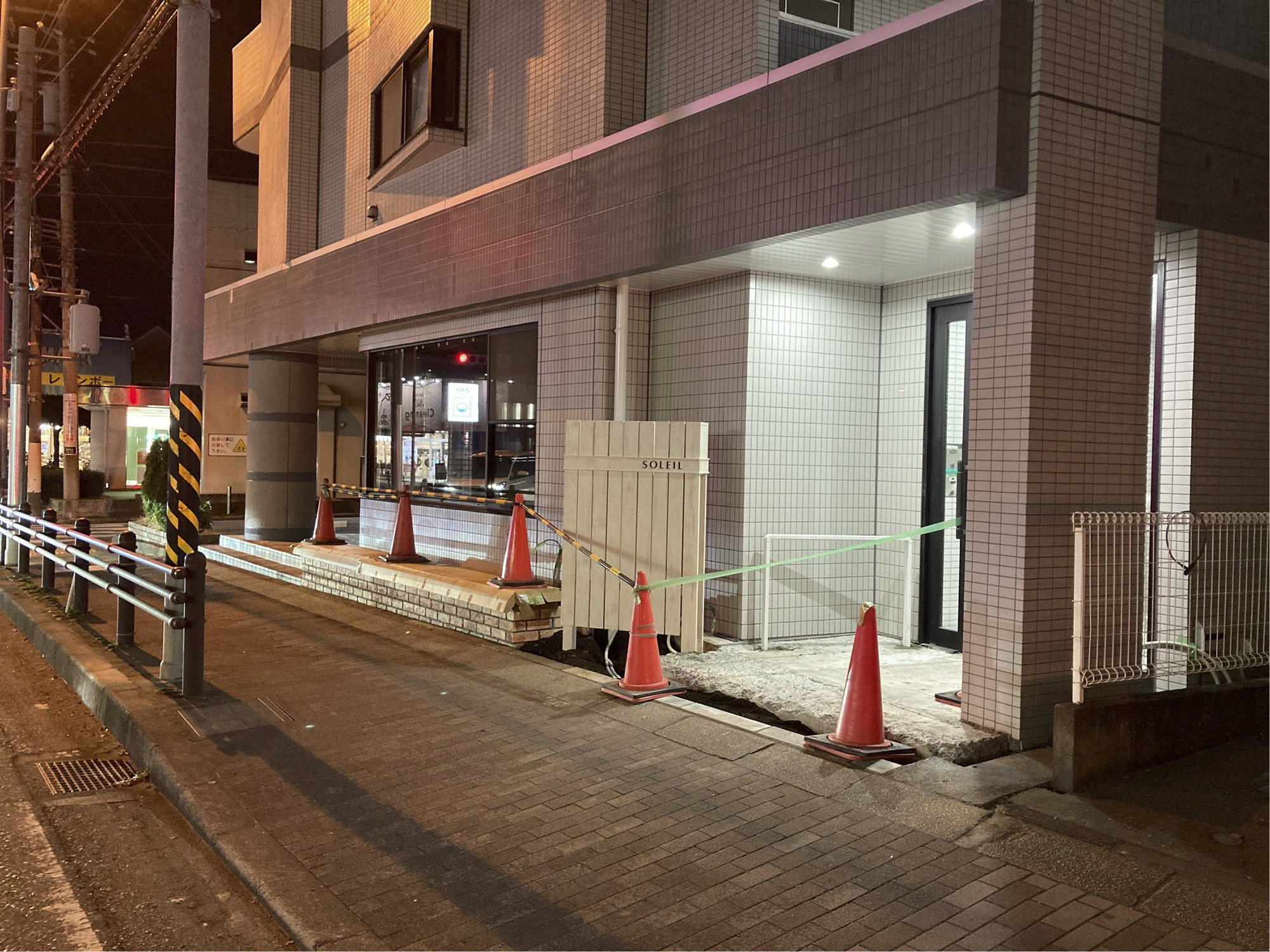 賃貸マンションのエントランスのリノベーションと、ライティング設備の設置を含めた外構工事を行いました。